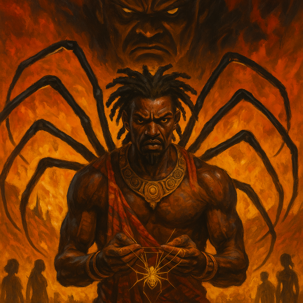 In the twilight bend between worldsāwhere the sea breathes secrets and the silk-cotton trees whisper old truthsāAnansi sat in judgment, sipping cassava tea laced with lime leaf and legend.