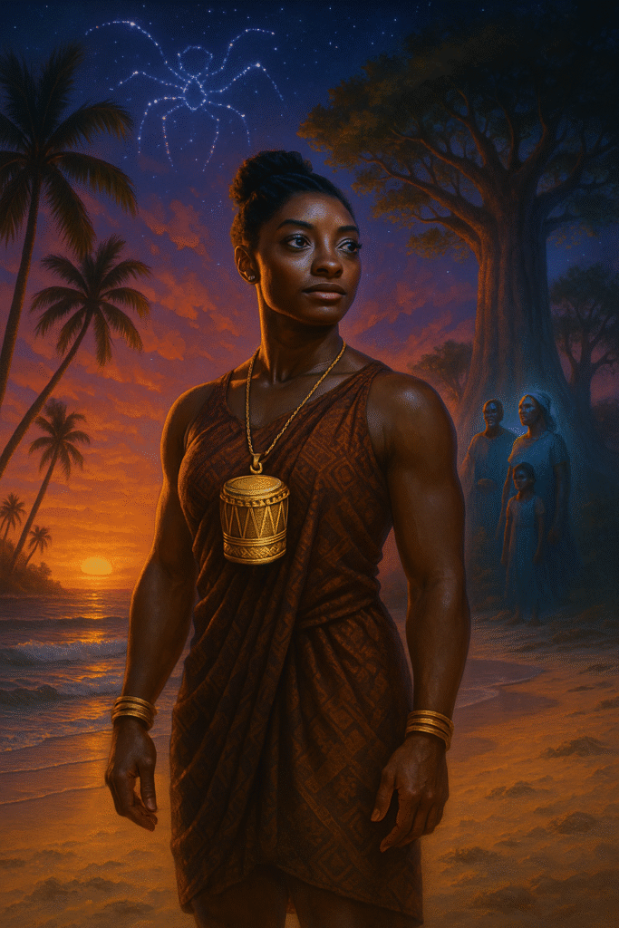 Parody story. Fictional narrative. Not endorsed by Simone Biles or any public figure. Inspired by Garifuna Belizean cultural pride, satire, and ancestral joy.
